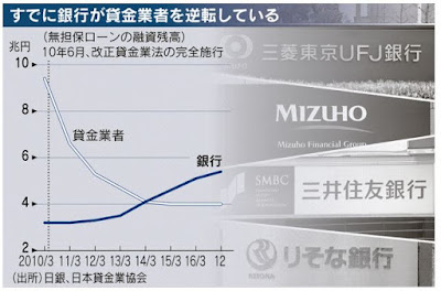 サラ金もまた「貸金業法」規制の強化によって次々に廃業して激減した。そのサラ金業者にとって「銀行」という新たな看板が使え、これまで怖がって近づかなかった客層を狙える。しかも厳しい貸金業法の規制も及ばないのだ。年収の3倍を超える融資だって何の問題もなくできる。こうして破滅に至る過剰貸出ができることになった。